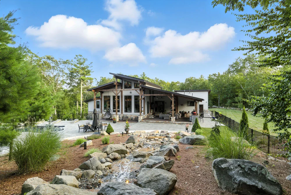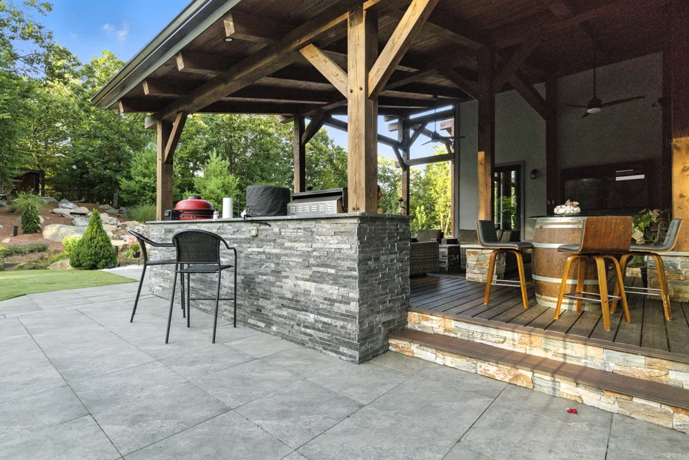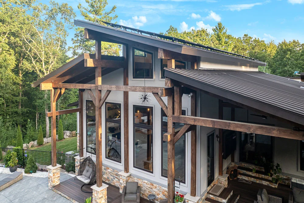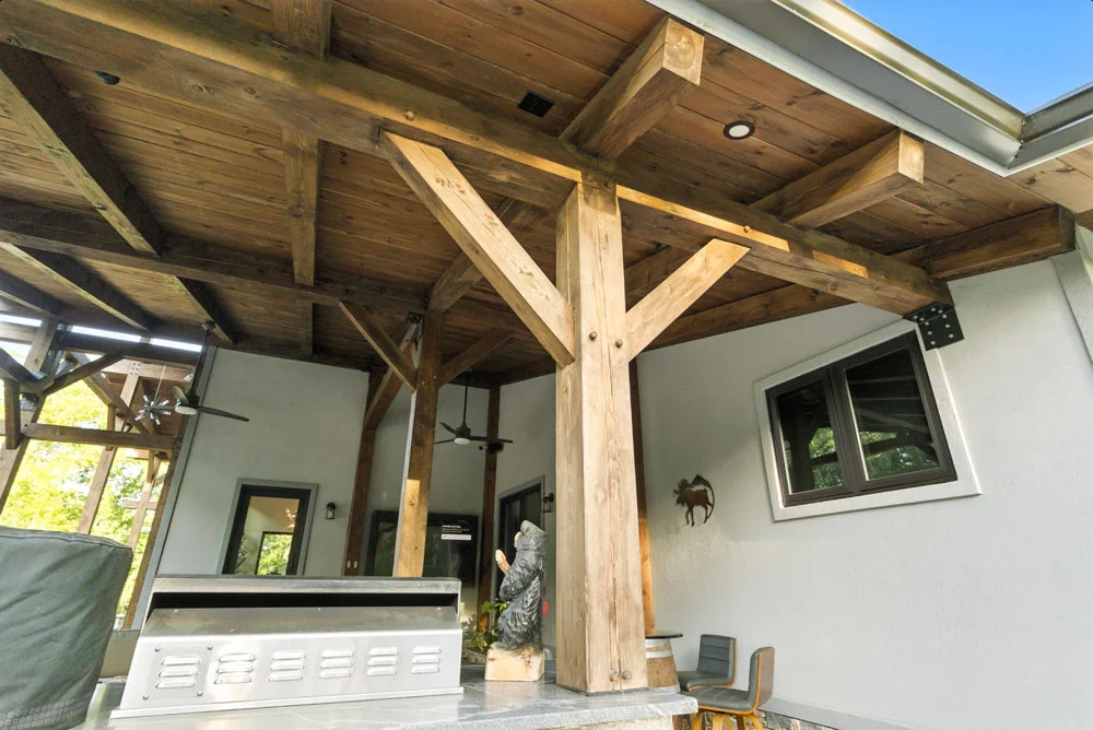 The story didn’t end when the home was complete. A year later, the homeowners invited us back to design and build a covered porch and outdoor kitchen. This addition transformed the property into a true four-season retreat, perfect for summer entertaining and year-round enjoyment.