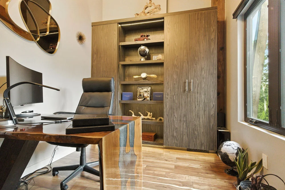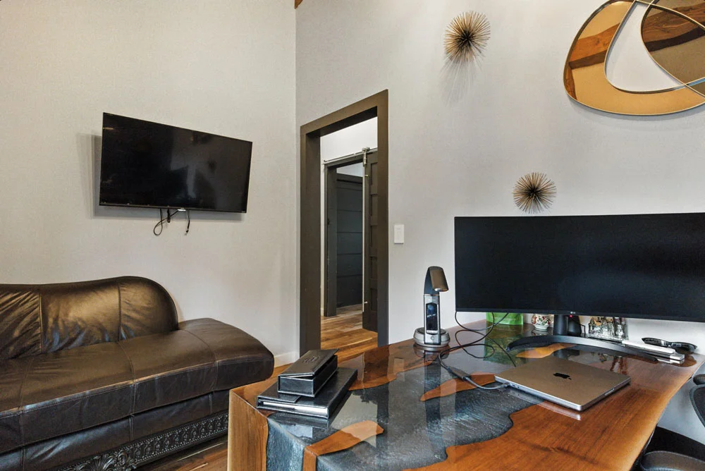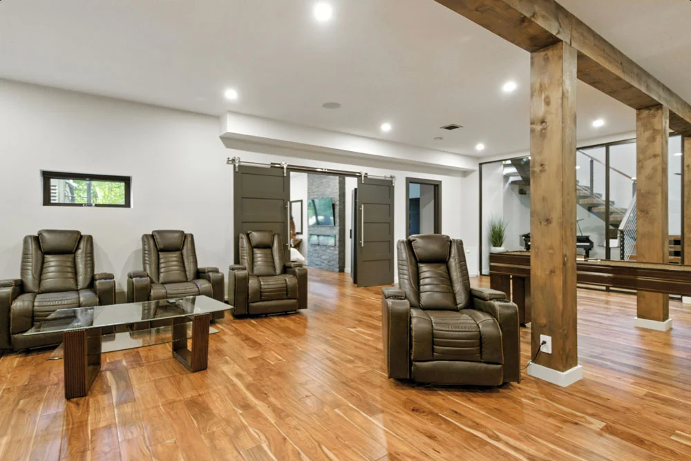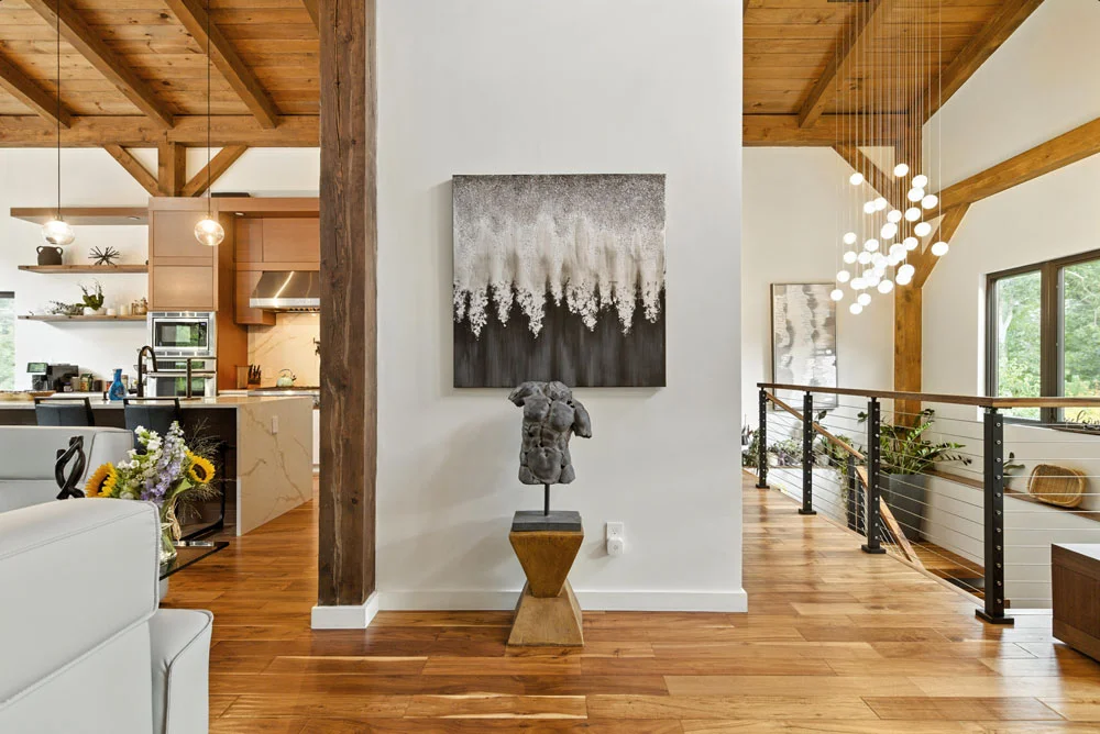 What began as a solution to a structural dilemma became one of the home’s defining architectural features. Those elevated windows flood the interior with natural light, adding warmth and drama to the expansive space.