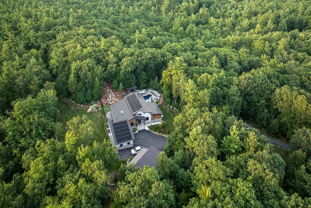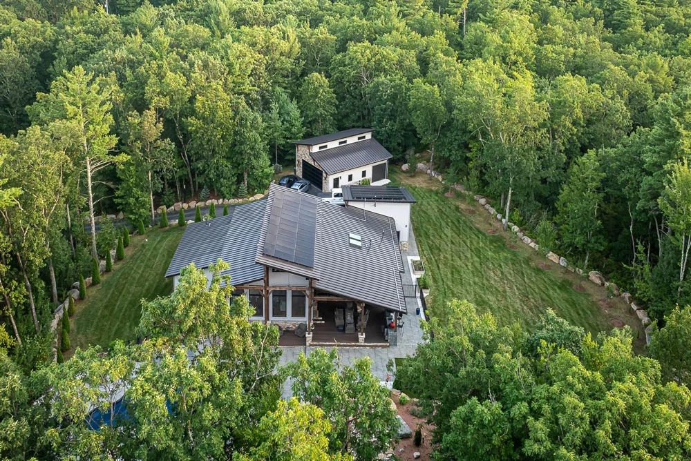 Despite its openness and abundance of glass, the home is exceptionally efficient. Thick insulated panels and triple-pane windows create a thermal envelope that keeps the interior comfortable while reducing energy costs—even during the harshest New England winters.